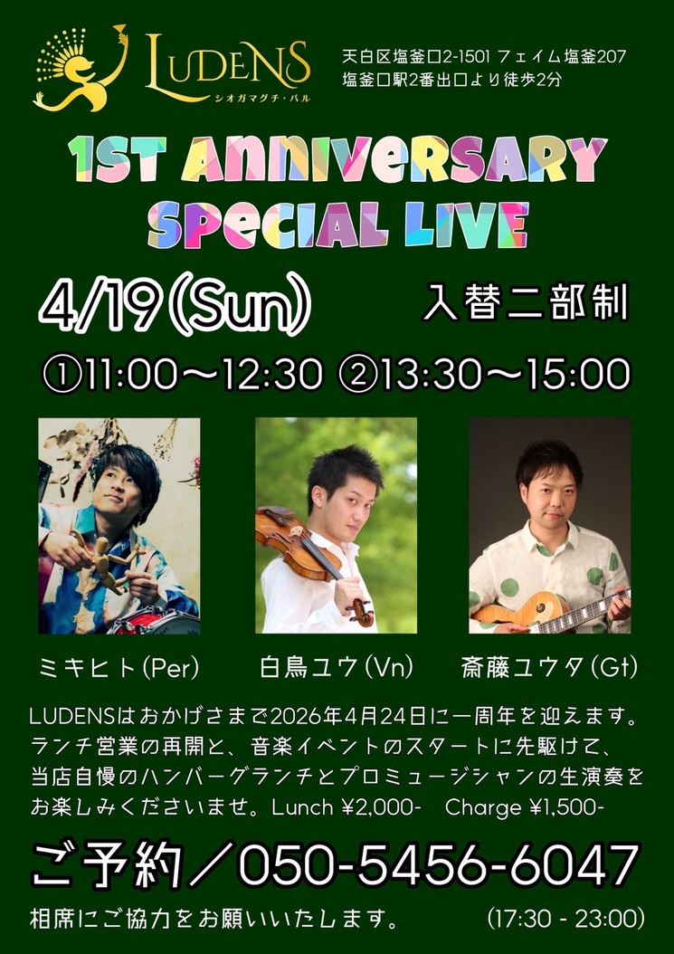 お申し込み、お問い合わせは、お電話(16時〜23時)、または kojima@ludens.nagoyaまで、お名前とご連絡先を添えてどうぞ。
